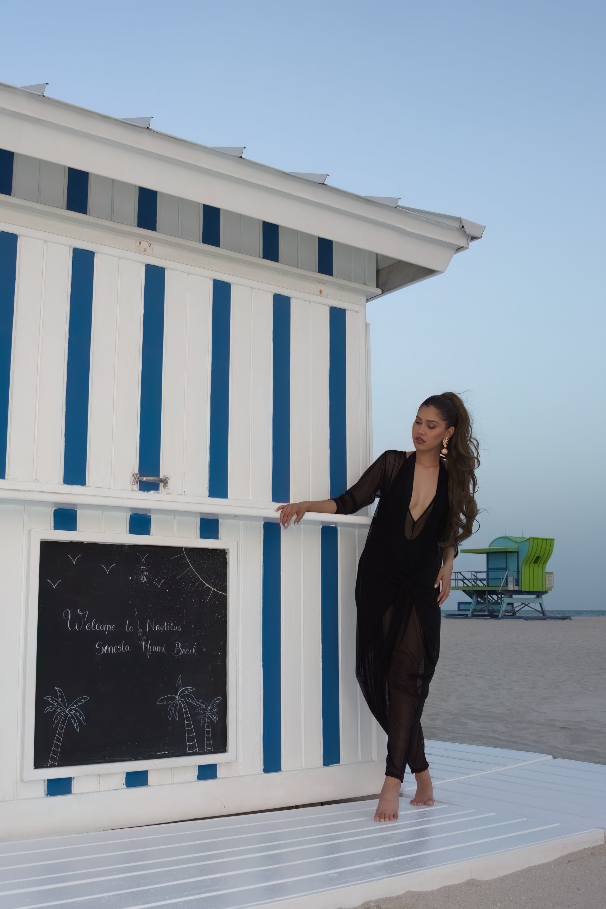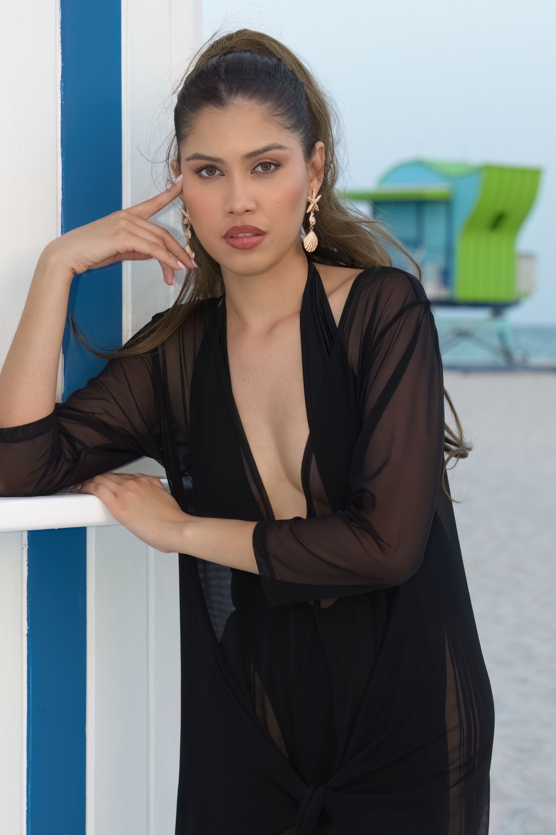 A sheer, lightweight cover-up designed to flow from sun to soirée. This ankle-length mesh romper features adjustable waist ties, a relaxed fit through the hips, and an airy silhouette that flatters without clinging. Slip it over any bikini for an instant resort-ready look. Designed for day-to-night styling—whether you’re poolside or headed to dinner.
